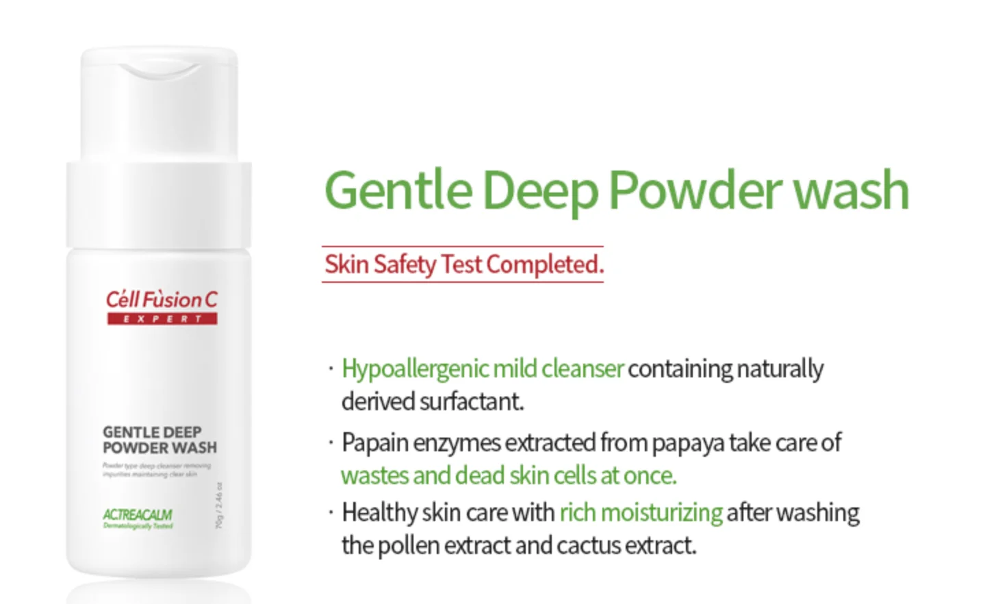 CELL FUSION C (Made in KOREA) Powder-based wash with papaya enzyme which removes impurities, keratin cells and cleanses pores all at once. Enzyme bubble pack which is very similar to skin pH level (5.6~5.9) makes skin with no bacteria and maximizes absorbing capacity in skincare products