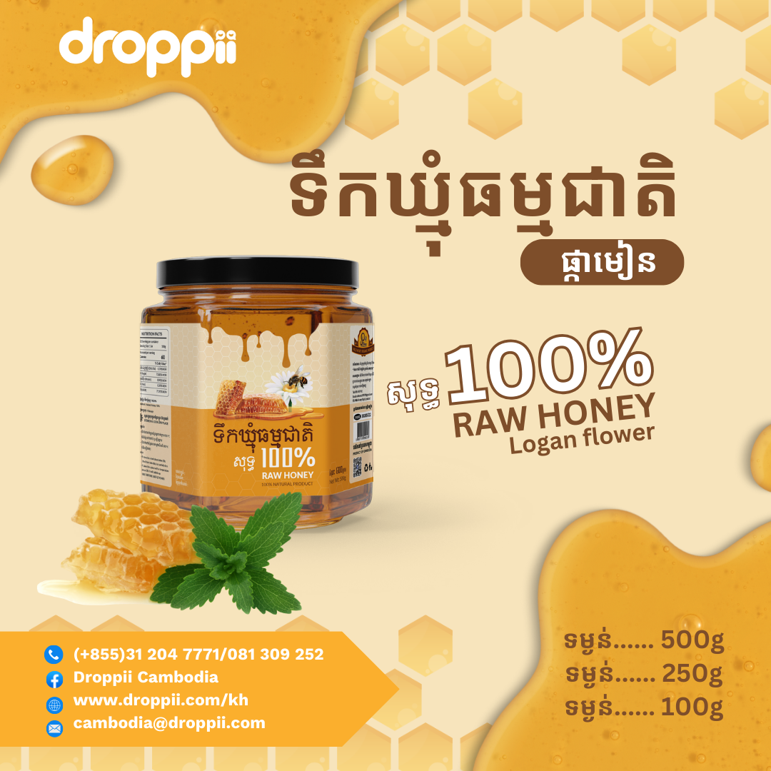 ទឹកឃ្មុំផ្កាមៀន (Raw Honey/Logan flower ) Gram/Kilogram 500 gram