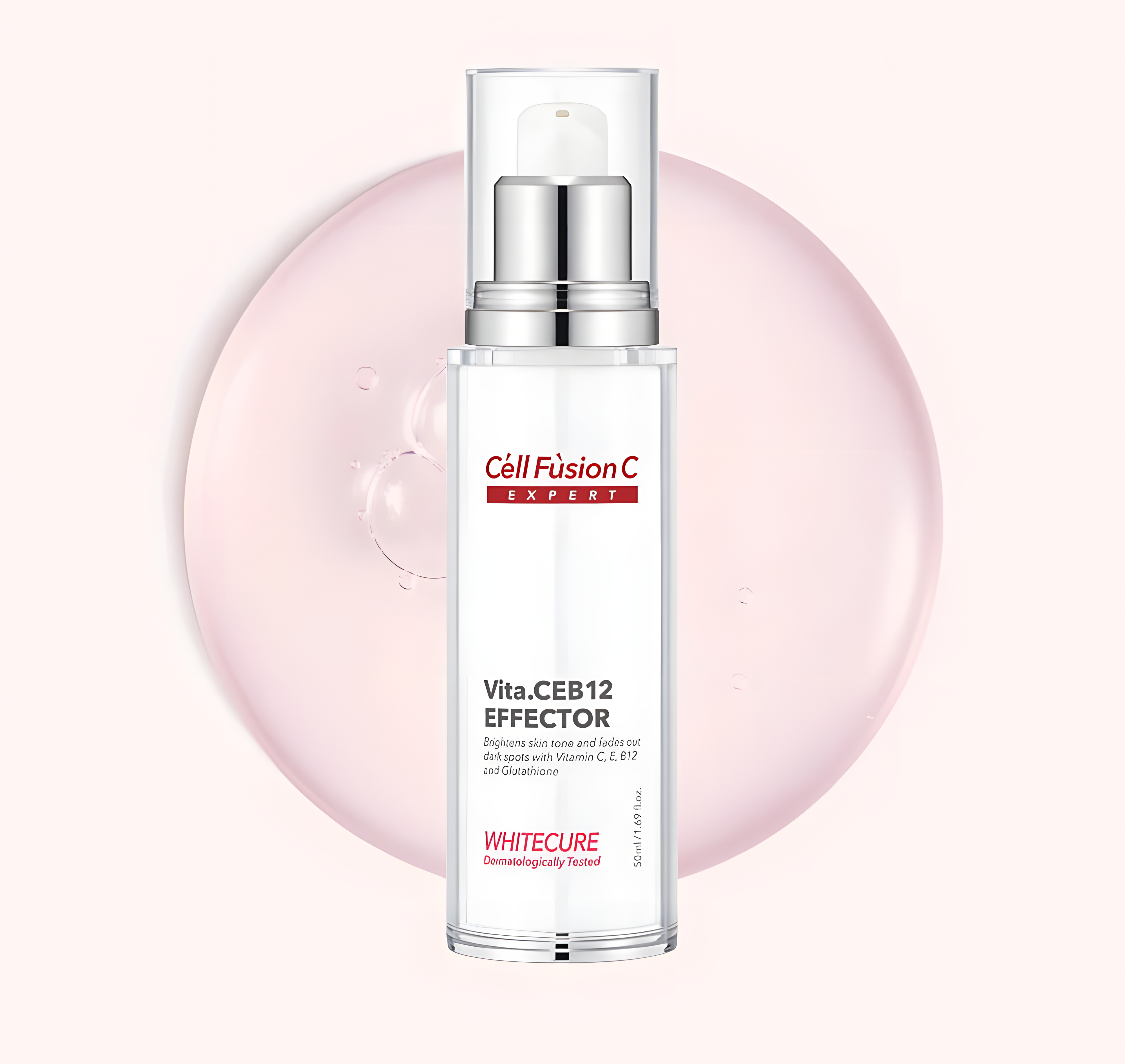 1.ឈ្មោះផលិតផល៖ សេរ៉ូមសារធាតុចិញ្ចឹមធ្វើឲ្យស្បែកស & ស្បែកភ្លឺថ្លា 50ml – Cell Fusion C Expert White Cure Vta.CEB12 Effector