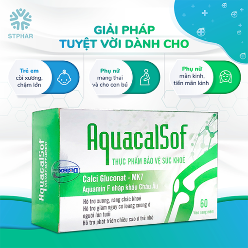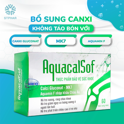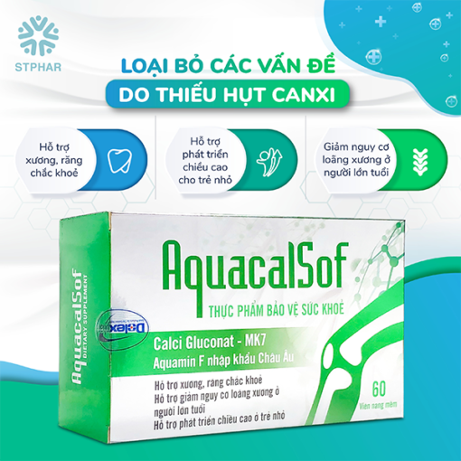 Aquacalsof dòng Canxi Hữu cơ châu âu với phối hợp phá cùng D3MK7 giúp hấp thu tối đa. Hỗ trợ xương răng chắc khoẻ, hỗ trợ nguy cơ loãng xương ở người lớn tuổi, hỗ trợ phát triển chiều cao ở trẻ nhỏ