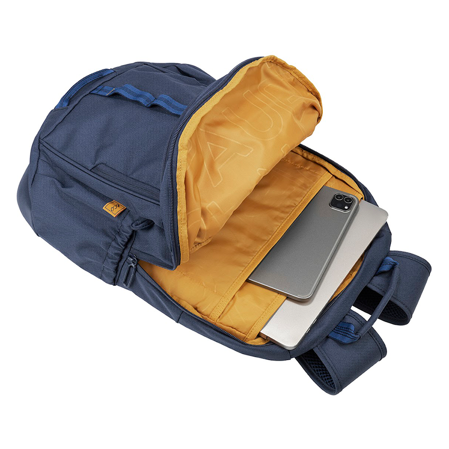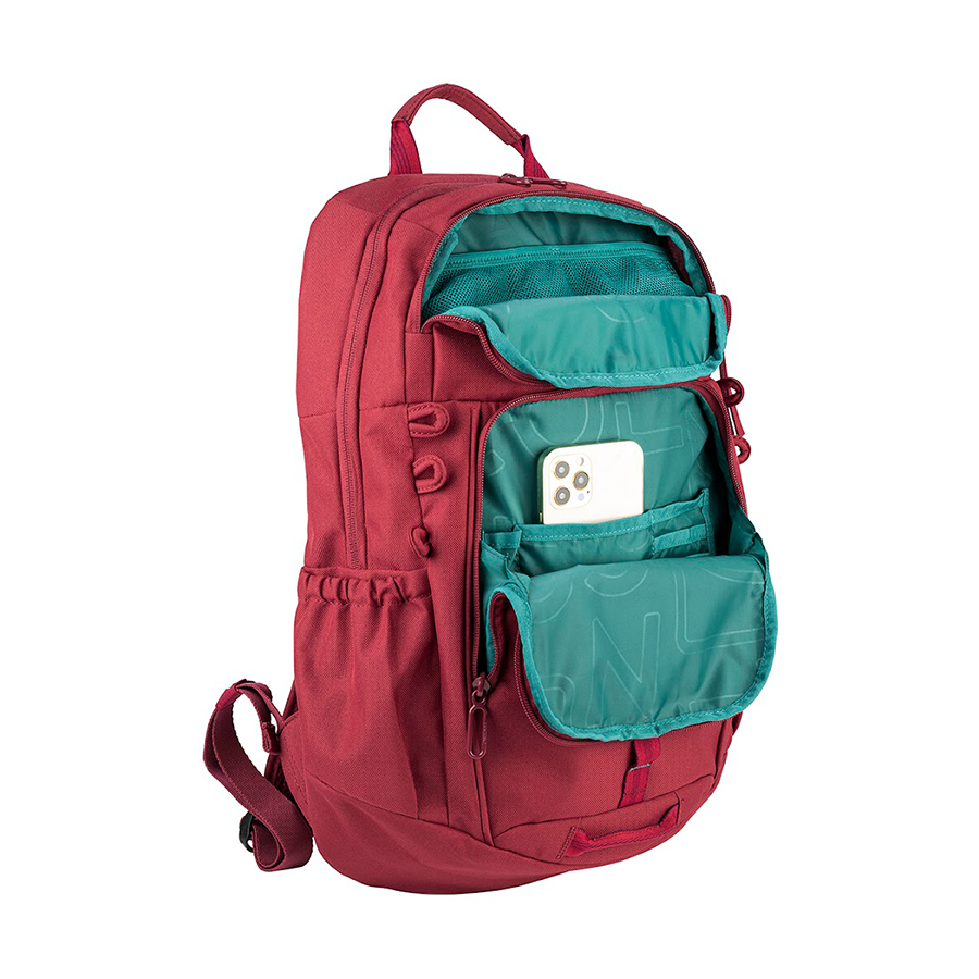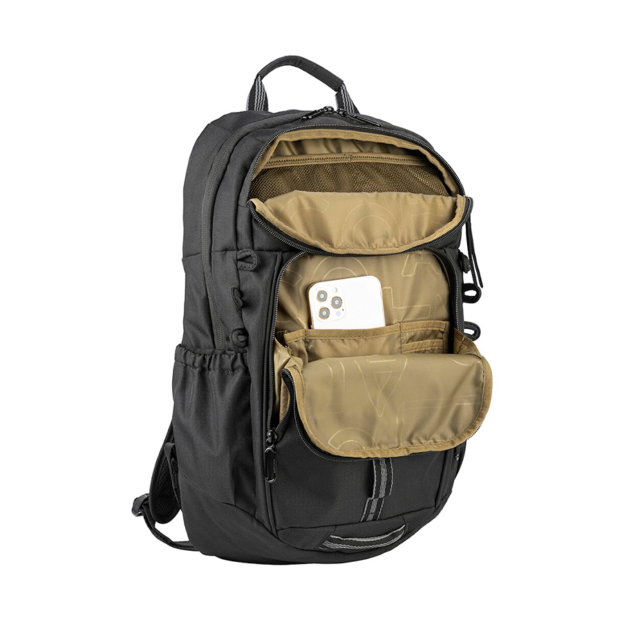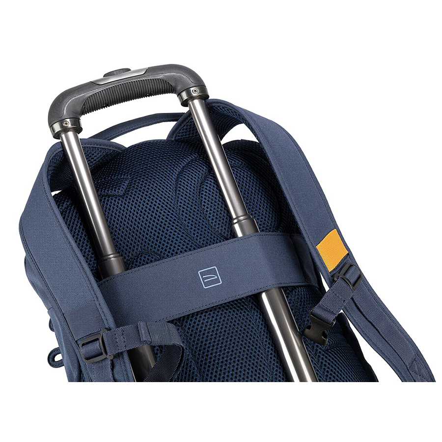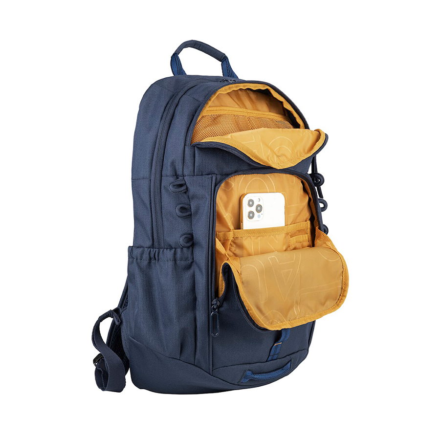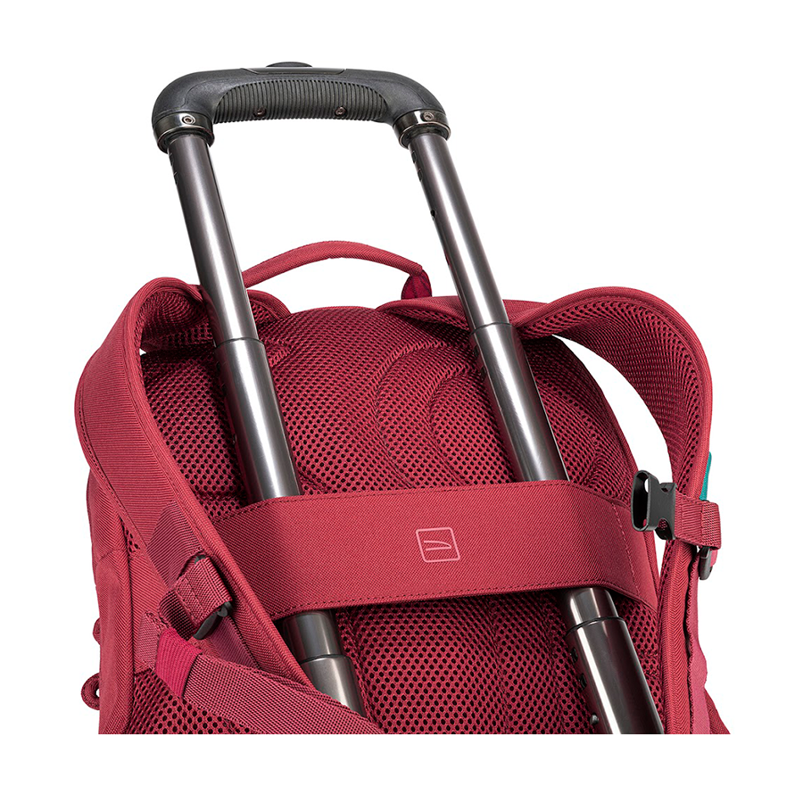 Balo có thiết kế thể thao linh hoạt, với nhiều ngăn lưu trữ phân chia rõ ràng, bao gồm ngăn riêng biệt cho laptop và máy tính bảng. Mặt trước balo có túi để đựng phụ kiện, dây đeo vai có thể điều chỉnh độ dài và tích hợp dây đeo xe đẩy tiện lợi. Hai bên của balo có thêm hai túi rộng rãi để đựng chai nước và cây dù. Bên cạnh đó, balo còn có dây đeo vai có đệm êm kèm với dây gài trước ngực, tạo sự thoải mái khi sử dụng.