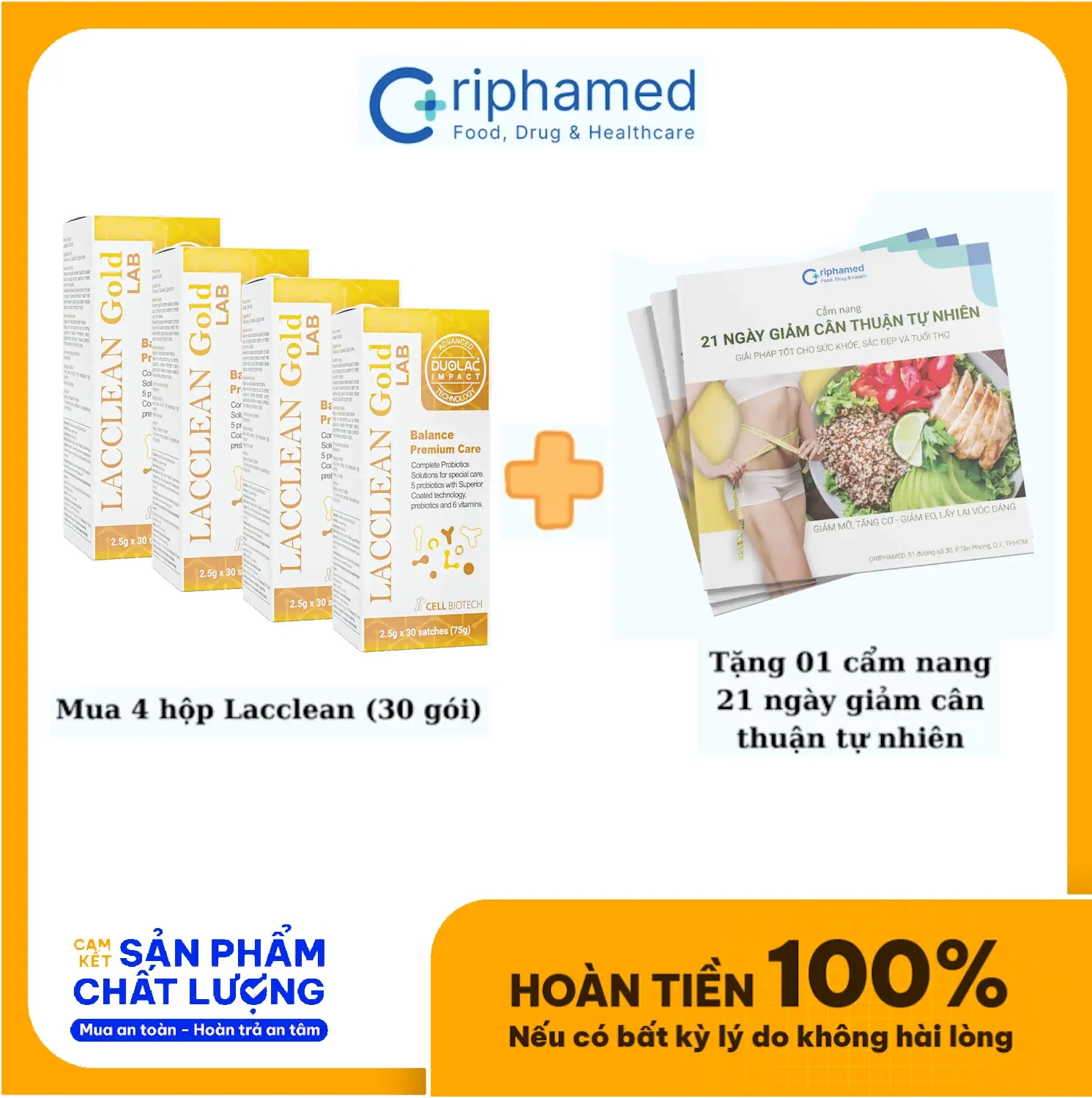 Combo 21 Ngày Giảm Cân Thuận Tự Nhiên với Lacclean Gold với công thức đa chủng hiệp lực gia tăng tác dụng probiotic (Symbiotic), từ 5 chủng đã được đăng ký bản quyền tại GenBank bởi công ty Cell Biotech. Bổ sung thêm prebiotic (Fructose Oligosaccharide), các vitamin nhóm A, B (B1, B2, B6), và C. Thiết kế gói bột thơm ngon và tiện dụng, có hiệu quả cao trên các rối loạn đường ruột cấp – mãn. Sản phẩm tốt khi dùng thường xuyên để ngăn ngừa bệnh tật và chăm sóc sức khỏe.