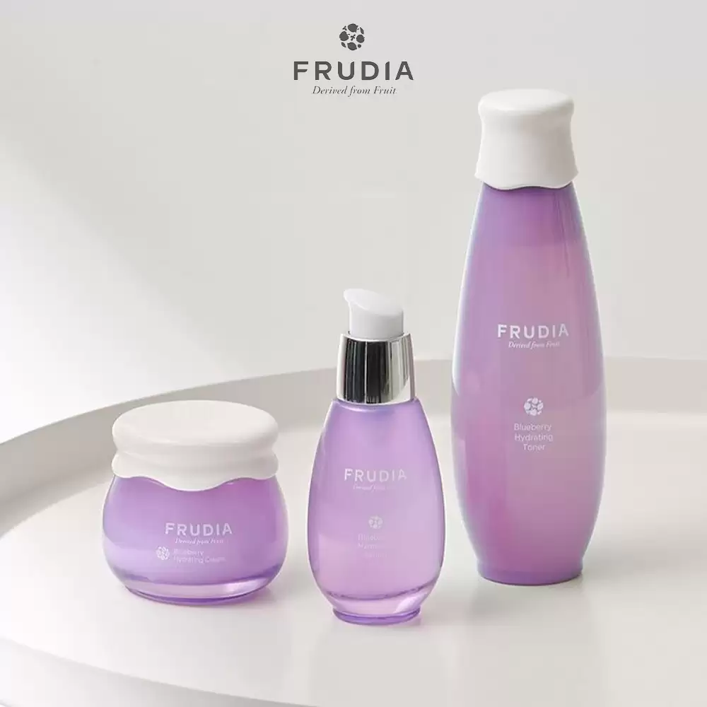 Combo 3 bước dưỡng ẩm cho da khô chiết xuất Việt Quất – Frudia Blueberry hydrating chứa thành phần nước ép Việt Quất theo công nghệ R Vita W giúp giữ nguyên tinh chất, hỗ trợ dưỡng ẩm hiệu quả cho da.