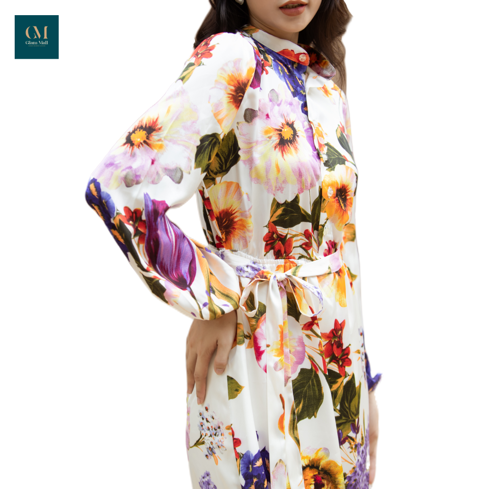 Đầm hoa tay phồng Fenno là sự kết hợp tinh tế giữa sắc màu và họa tiết hoa rực rỡ, tạo nên vẻ đẹp cuốn hút và sang trọng.