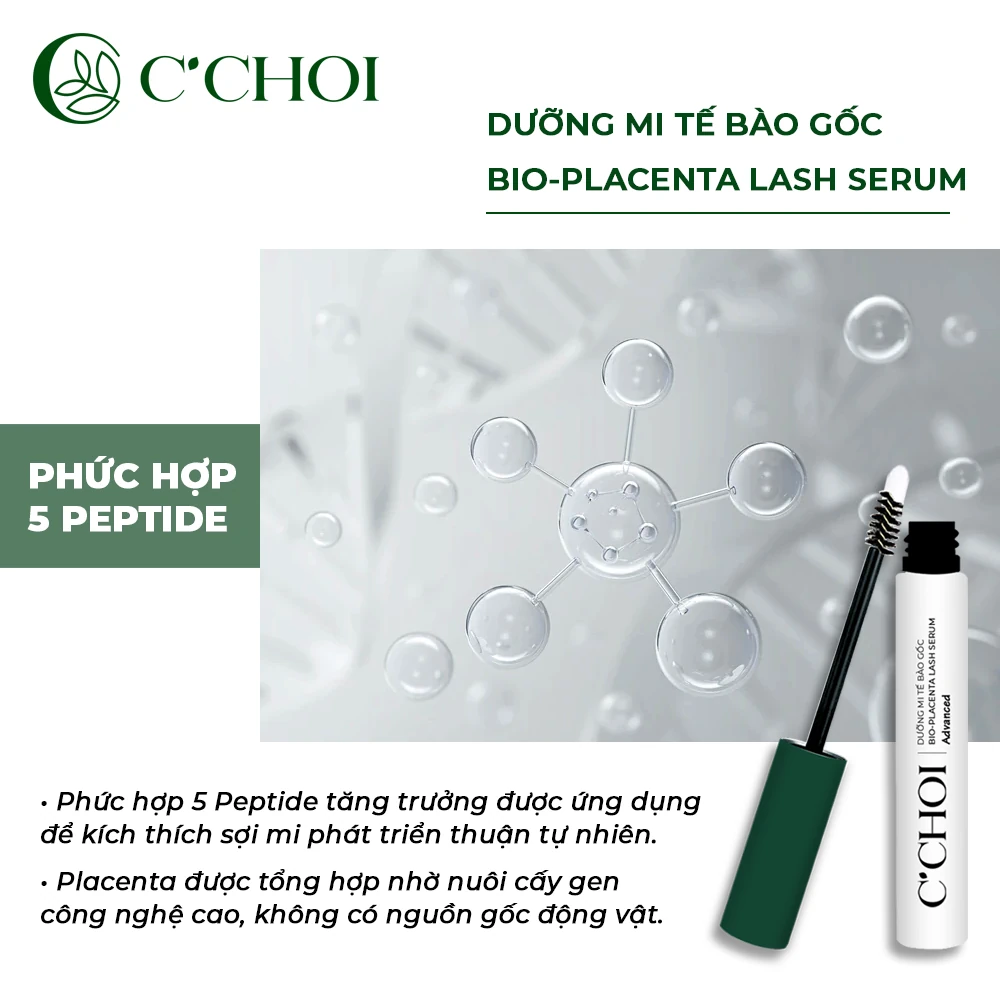 Dưỡng Mi Tế Bào Gốc C’Choi – Bio Placenta Lash Serum với thành phần chính là BIO-Placenta. Đây được xem như bước tiến đột phá của công nghệ sinh học Hàn Quốc. Là sự tổng hợp từ 5 loại Peptide tăng trưởng, cùng các Amino Acids và Vitamin. Dưỡng Mi Tế Bào Gốc của Mỹ phẩm xanh C’Choi tự hào là sản phẩm nuôi dưỡng và thúc đẩy tăng trưởng kích thước của sợi mi một cách HIỂU QUẢ và tuyệt đối an toàn, kể cả đối tượng phụ nữ có thai và trẻ em từ 1 tuổi. Hàng mi dày và dài làm cho bạn quyến rũ hơn bao giờ hết. Hãy để Dưỡng Mi Tế Bào Gốc giúp bạn thực hiện điều đó.