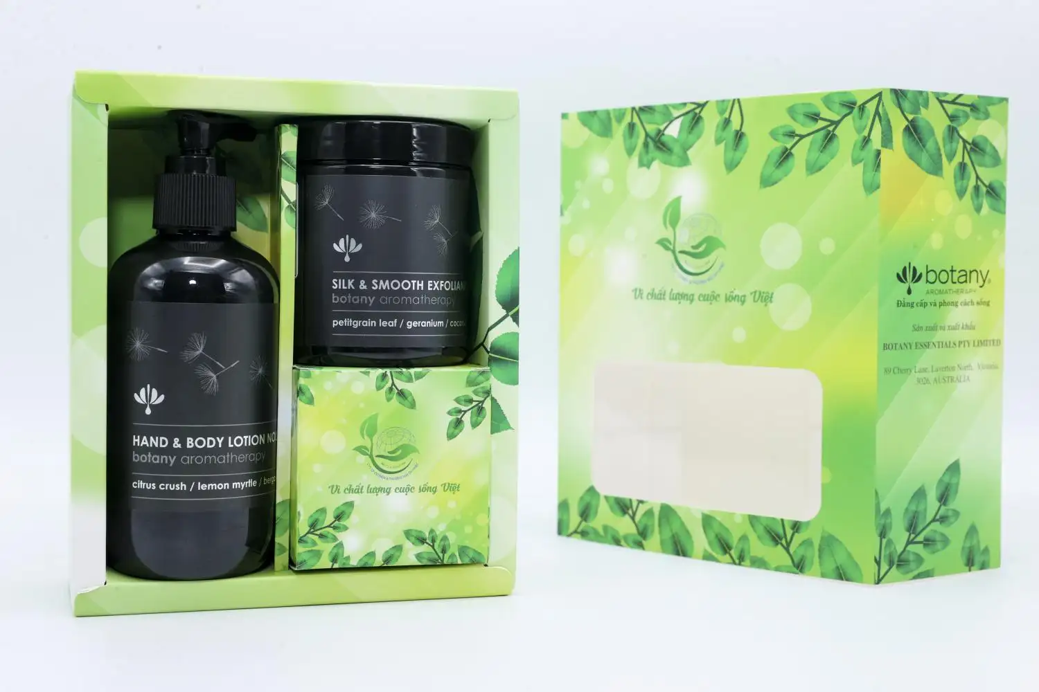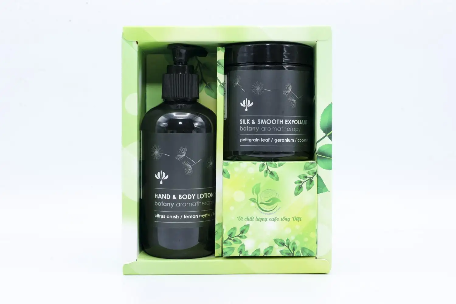 Bộ sản phẩm chăm sóc cơ thể toàn diện của Botany với tên gọi BOTANY AROMATHERAPY (Hộp quà chăm da sáng mịn Botany)  – có nghĩa là liệu pháp chăm sóc cơ thể bằng mùi hương. Đây là một trong những liệu pháp chăm sóc cơ thể đẳng cấp và xu hướng nhất hiện nay.