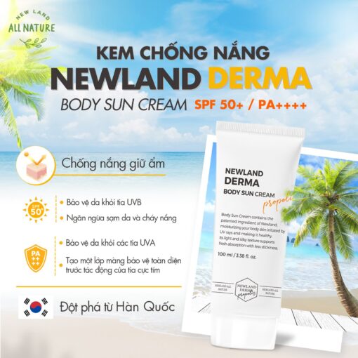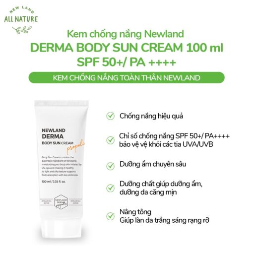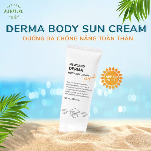 Kem chống nắng toàn thân Derma Body Sun Cream có khả năng chống nắng hoàn hảo với chỉ số SPF 50+ PA++++ giúp bảo vệ làn da cơ thể luôn rạng rỡ, tránh tác hại từ tia UV gây sạm nám, khô nhăn hay thiếu độ đàn hồi. Đồng thời, sản phẩm có đặc tính chống thấm nước tốt, kết cấu mỏng nhẹ không nhờn rít da cùng khả năng nâng tone nhẹ nhàng.