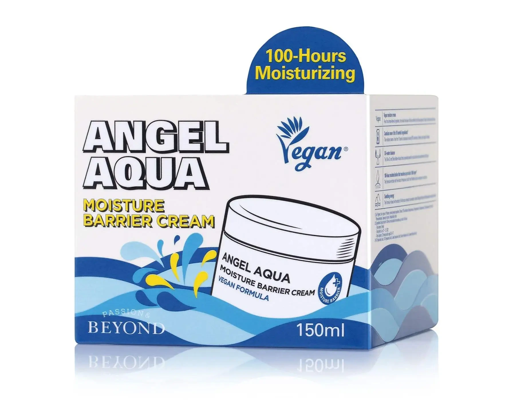 Kem dưỡng cấp ẩm 100 giờ Beyond Angel Aqua Moisture Barrier Cream là sản phẩm dưỡng ẩm kép đặc biệt. Công thức của kem không mùi tạo lớp màng ẩm mượt kéo dài 100 giờ đến tận lớp sừng thứ 10 của da, cải thiện hàng rào bảo vệ da và ngăn chặn mất nước. Bên cạnh đó, sản phẩm chứa nhiều loại dưỡng chất từ thiên nhiên và không sử dụng nguyên liệu động vật. Kem có dạng đậm đặc không mùi, giúp bảo vệ và dưỡng ẩm da hiệu quả.