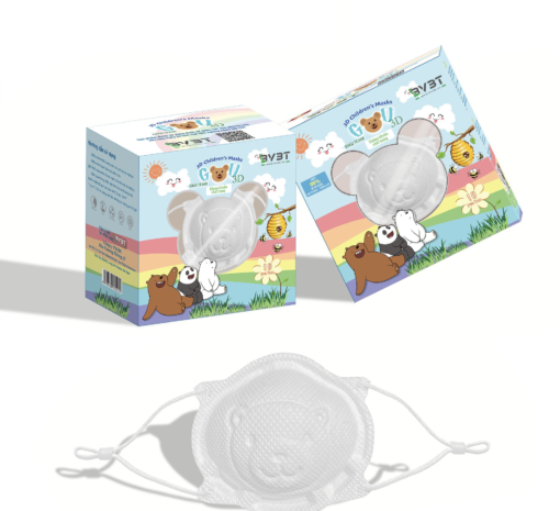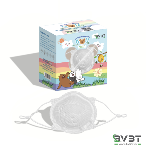 Khẩu trang 3D kháng khuẩn BV3T Gấu là dòng sản phẩm khẩu trang kháng khuẩn cao cấp sử dụng vải không dệt công nghệ mới nhất hiện nay là SSMS dành cho trẻ sơ sinh gồm 3 lớp theo đúng tiêu chuẩn