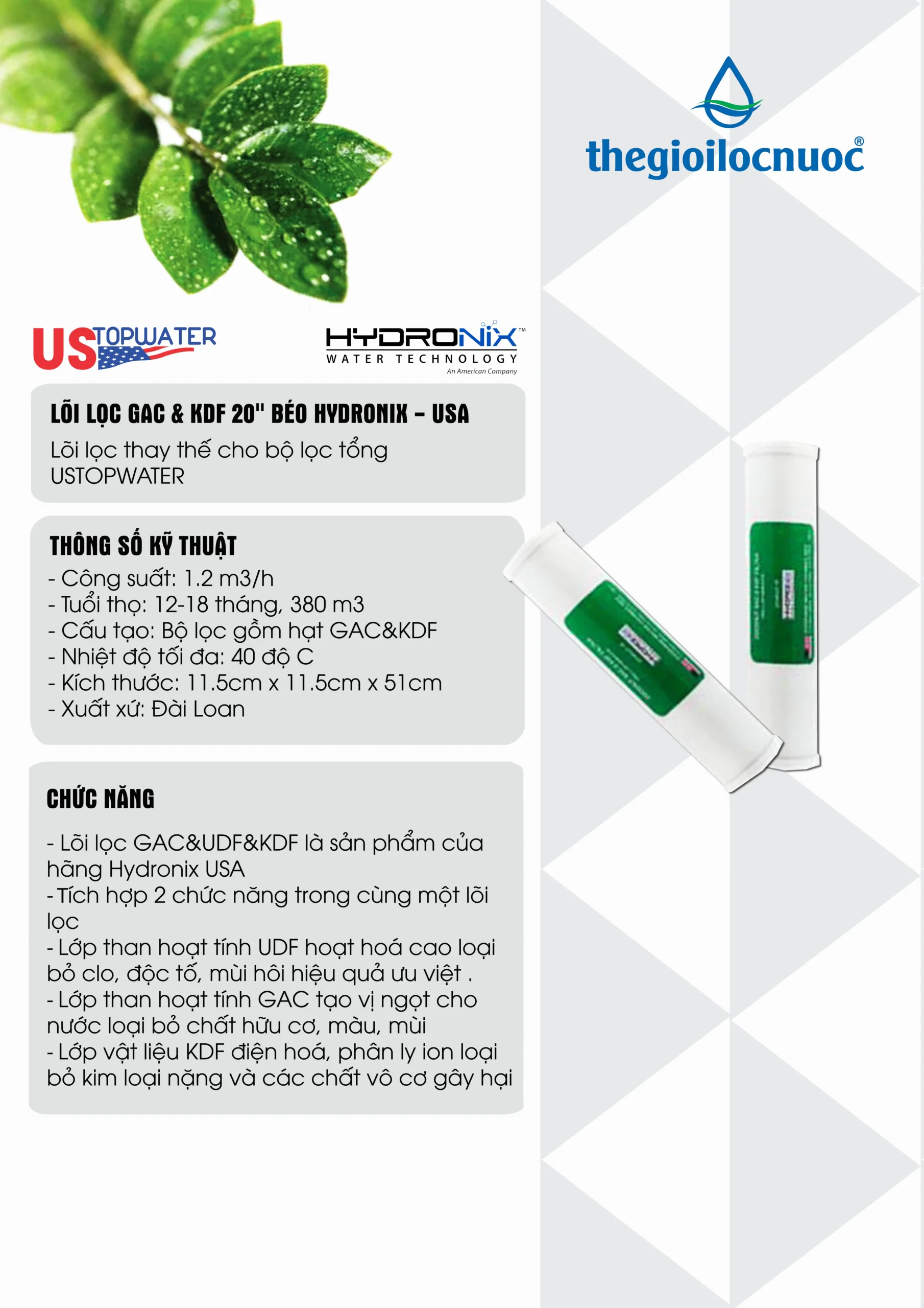 Lõi lọc GAC & KDF 20″ béo Hydronix – USA