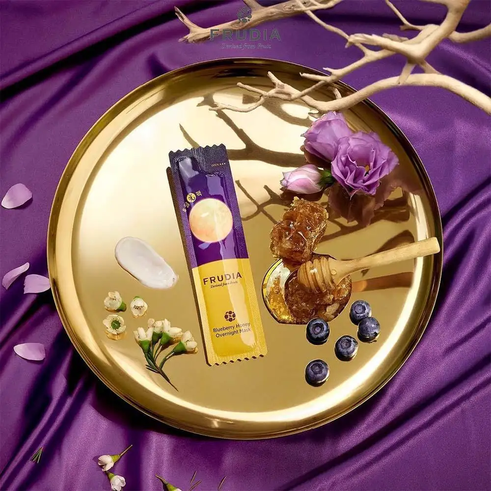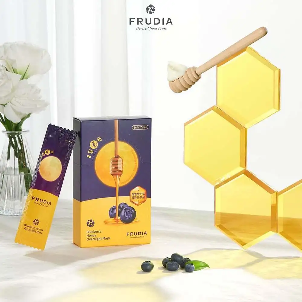 Mặt nạ ngủ Việt Quất Frudia Blueberry Honey Overnight Mask cấp ẩm cho da khi ngủ với lớp mật ong giàu dưỡng chất. Với chiết xuất từ trái việt quất đắm chìm trong lớp mật ong giúp cấp ẩm cho da, mang đến một làn da mềm mại và ẩm mượt. Tận hưởng liệu pháp phân loại xanh EWG cho làn da đã quá nhiều mệt mỏi, mang lại cấu trúc da mịn màng như bạn có một giấc ngủ đêm tuyệt vời.