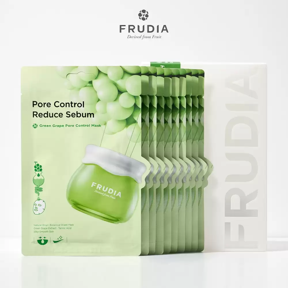 Mặt nạ Nho Xanh chăm sóc lỗ chân lông – Frudia Green Grape pore control mask 20ml chăm sóc lỗ chân lông chuyên sâu, hỗ trợ thu nhỏ lỗ chân lông, cung cấp dưỡng chất và độ ẩm cho da khỏe mạnh. Kết cấu mỏng và ôm sát theo đường cong khuôn mặt, màu sắc miếng mặt nạ hoàn toàn tự nhiên – an toàn hơn cho da. Áp dụng công nghệ ép lạnh tinh chất trái cây R Vita W, giúp giữ nguyên tinh chất tốt lành nhất từ thiên nhiên cho làn da của bạn. Sản phẩm đã hoàn thành kiểm nghiệm kích ứng da nên có thể sử dụng dễ dàng trên da nhạy cảm.