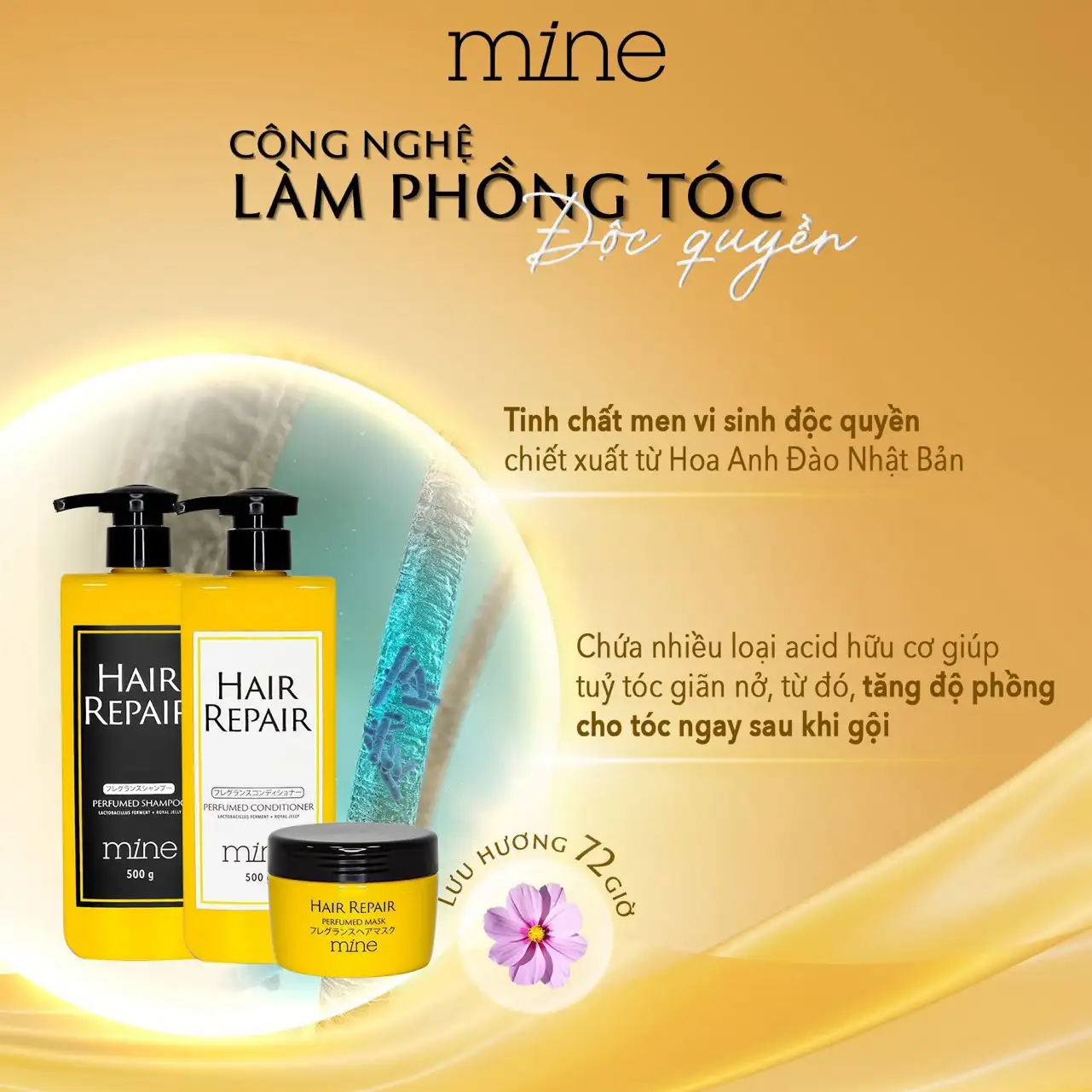 Mine Hair Repair Perfumed Mask 180g cung cấp x2 dưỡng chất, phục hồi tóc chuyên sâu: mái tóc của nàng sẽ được chăm sóc tận gốc với tổ hợp thành phần cao cấp, giàu dưỡng chất của Nhật Bản: Sữa ong chúa, đậu nành đỏ, hoa hồng Damask: