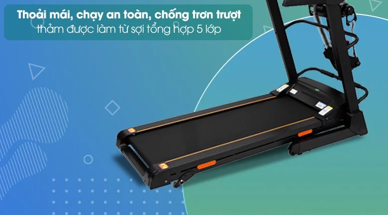 Máy chạy bộ trong nhà Airbike Sport T800 với tính năng linh hoạt, an toàn và tiện ích. Khoá an toàn, cảm biến nhịp tim, chân chống trượt đảm bảo an toàn và ổn định. Gập gọn, có cổng sạc USB và loa Bluetooth, tạo trải nghiệm tập luyện đa phương tiện. Lợi ích bao gồm giảm chi phí phòng tập, tiện lợi, êm ái, và đa dạng hóa bài tập với động cơ 2.0 HP và các thiết bị đi kèm. Màn hình LCD hiển thị đầy đủ thông số tập luyện, đảm bảo tính an toàn với khoá và piston trợ lực gấp gọn,…