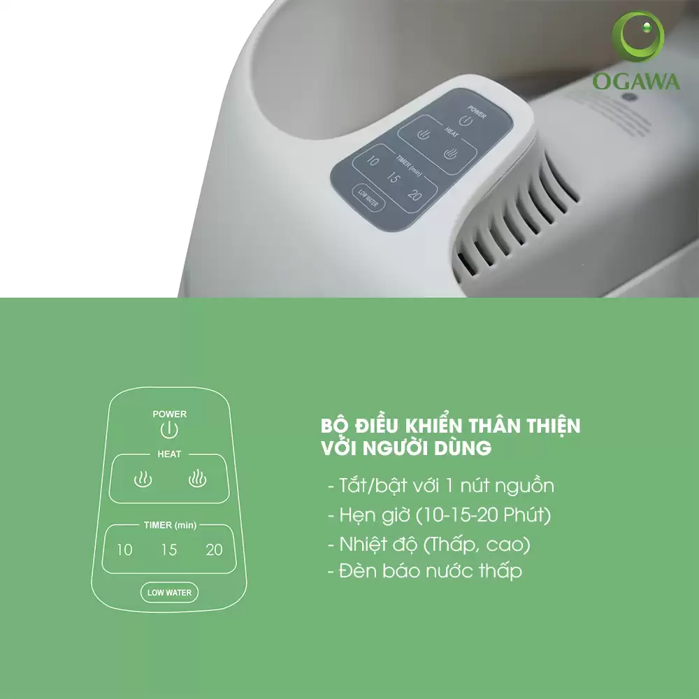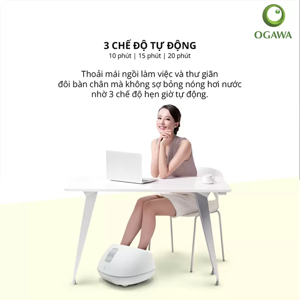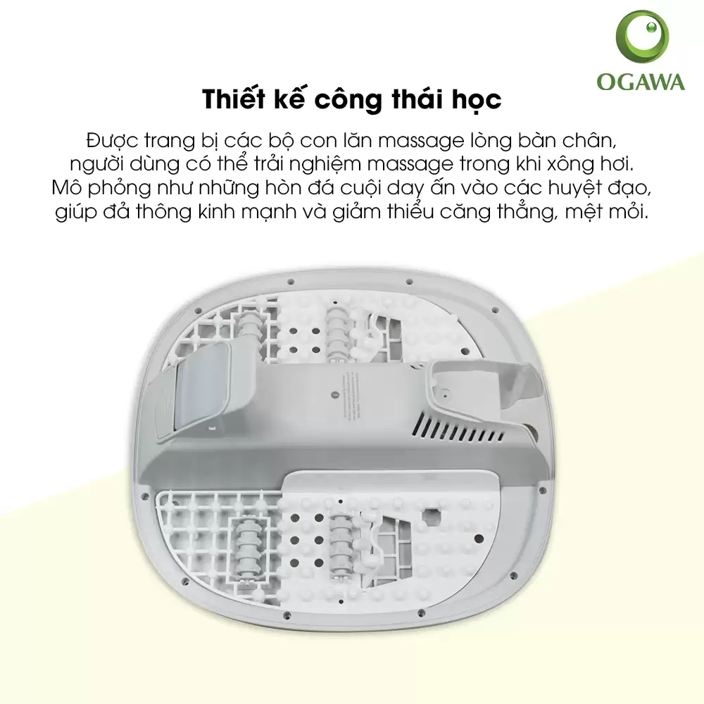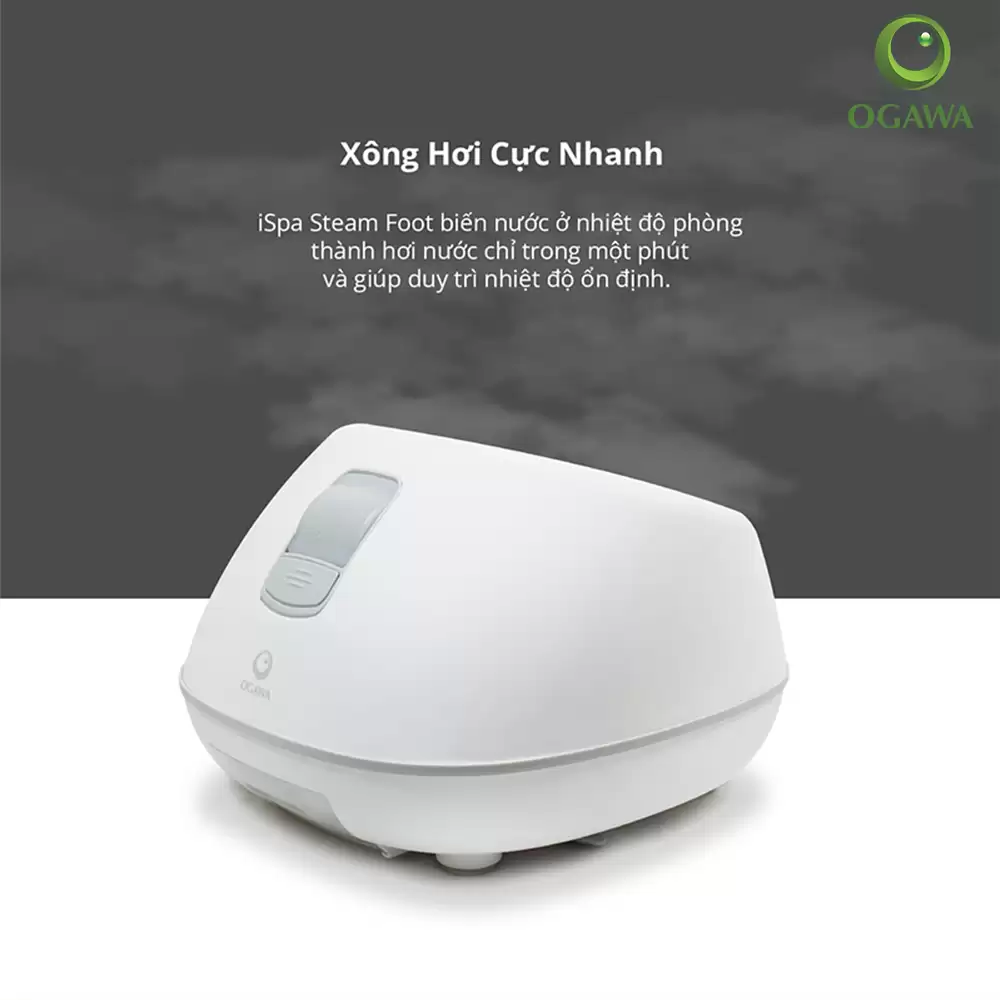 Máy massage chân bằng hơi nước Ogawa iSpa Steam Foot Massager (OF-3006) kết hợp xông hơi nước và massage bằng con lăn, mô phỏng liệu pháp lăn chân bằng đá nóng. Điều này giúp giảm nhức mỏi, kích thích lưu thông máu.