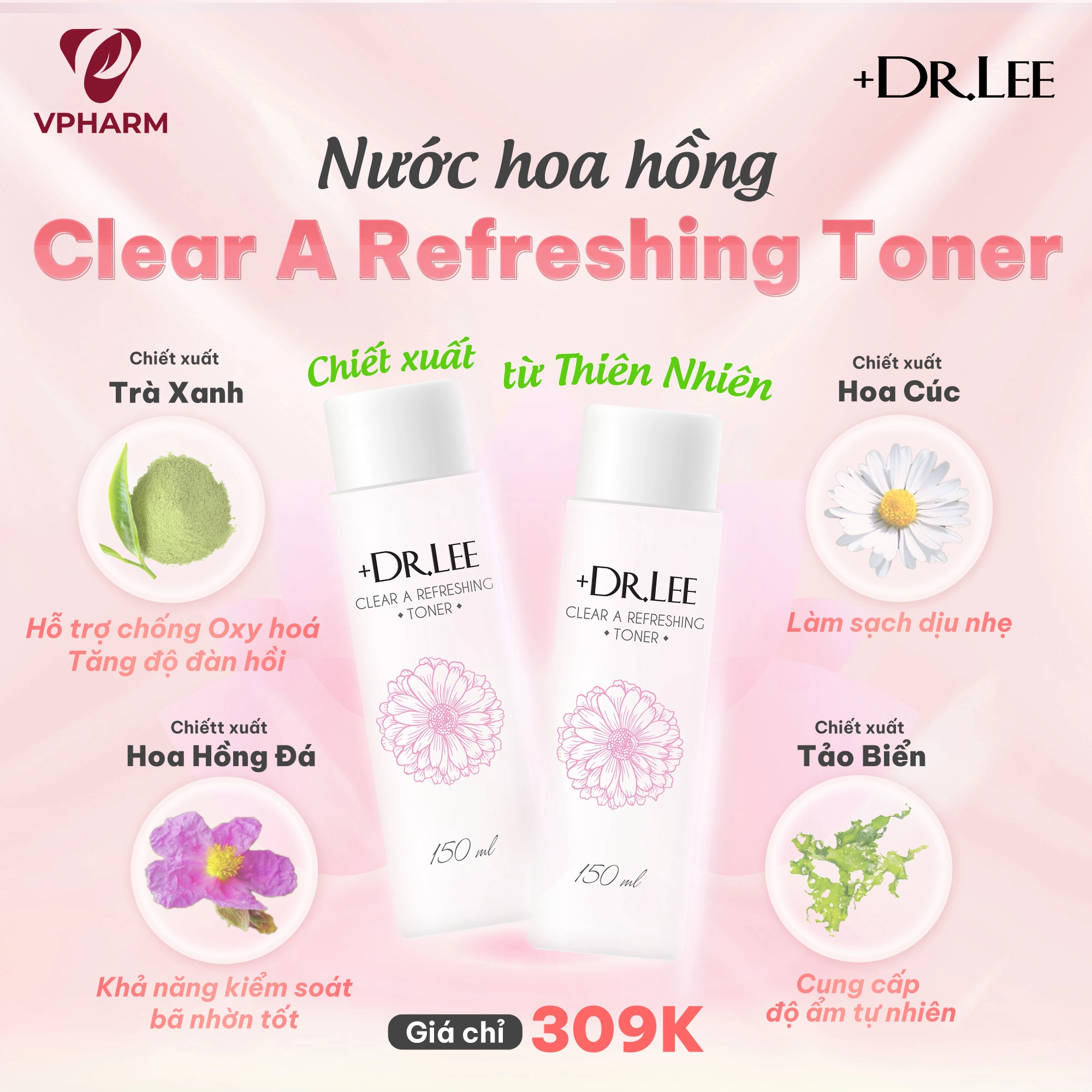 Nước hoa hồng Clear A Refreshing 150ml +Dr.Lee