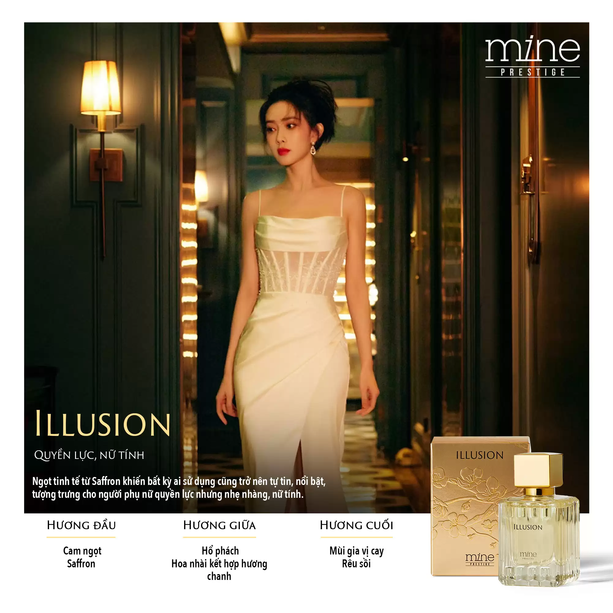 Mùi hương ILLUSION là một đường nét trong bộ 3 mùi hương trong bộ sưu tập. Sự kết hợp đầy tinh tế giữa hương hoa Saffron quý hiếm cùng với hương thảo mộc tạo nên hương thơm nhẹ nhàng nhưng độc đáo, khó trộn lẫn thể hiện giấc mơ về tình yêu vĩnh cữu, đầy mộng mơ.