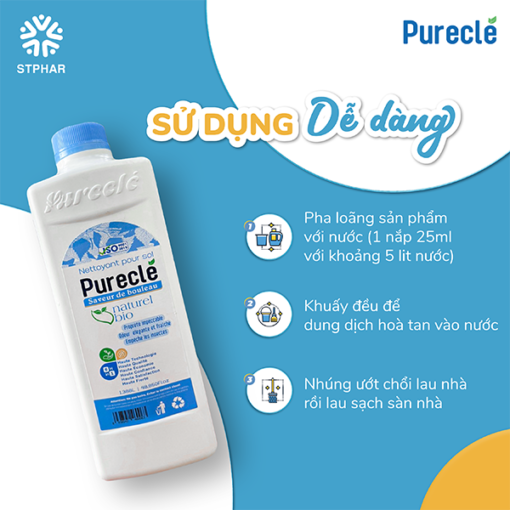 Nước lau sàn Purecle là nước lau sàn Organic tiêu chuẩn EU và sản xuất tại VN.