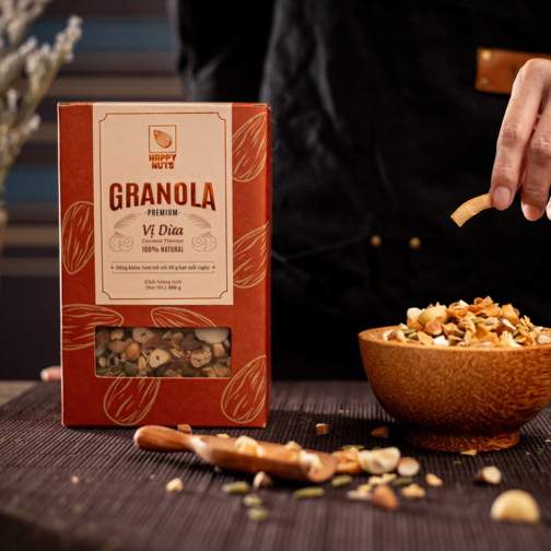 PREMIUM GRANOLA – VỊ DỪA HAPPY NUTS 500GR