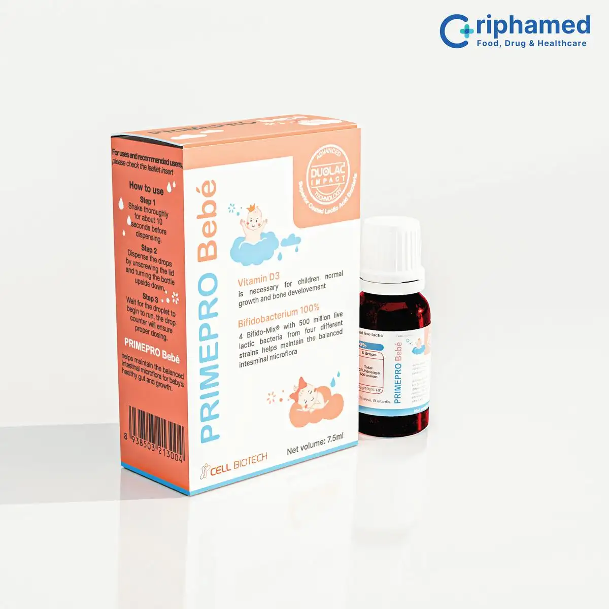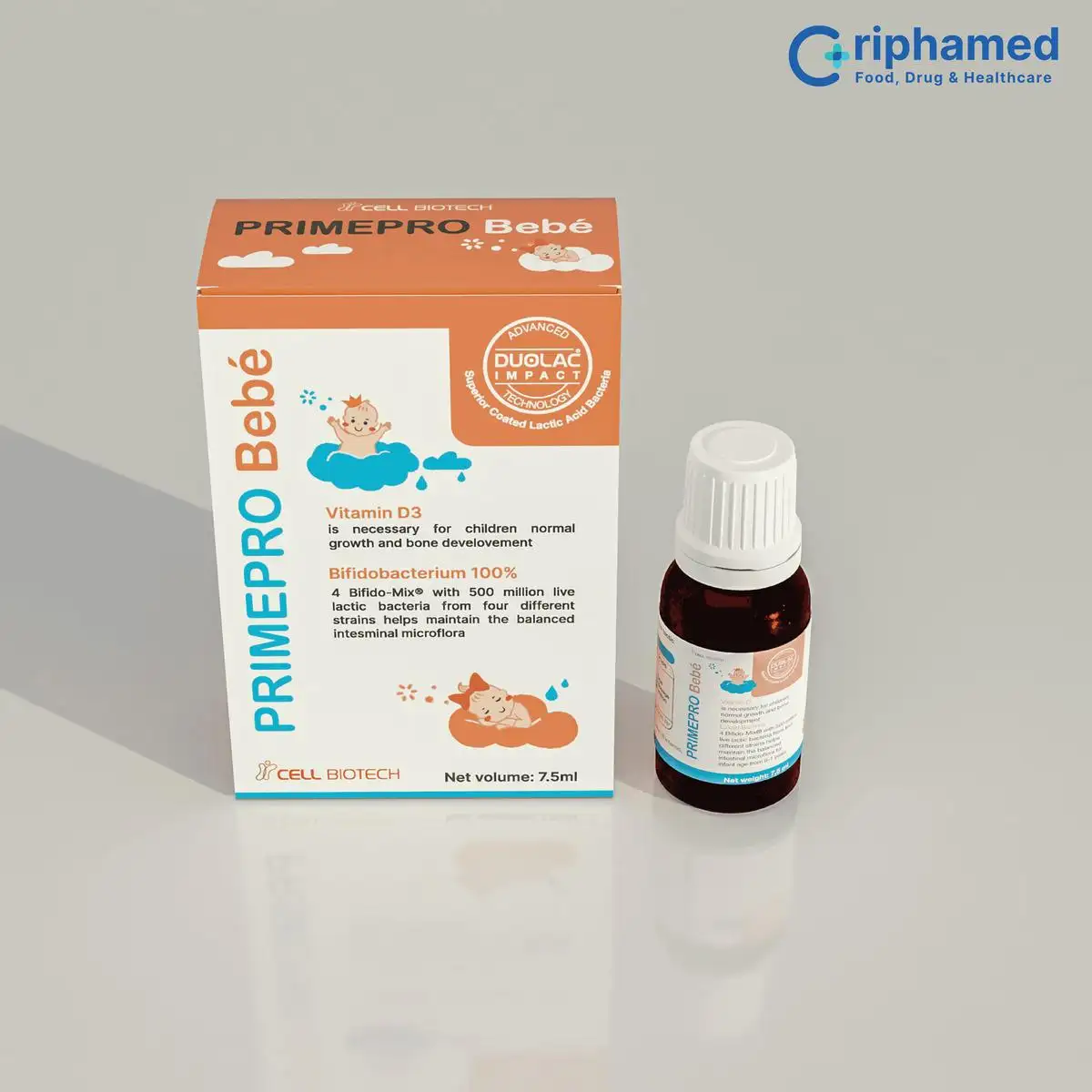 Men vi sinh bao kép thế hệ 4 PrimePRO Bebé chứa vi khuẩn lactic (LAB) cho trẻ sơ sinh, bảo vệ và cải thiện đường tiêu hoá bằng công nghệ bao kép độc đáo và công thức đa chủng hiệp lực. Sản phẩm tiện lợi dạng nhỏ giọt, phù hợp cho việc chăm sóc sức khỏe của trẻ từ đầu đời: