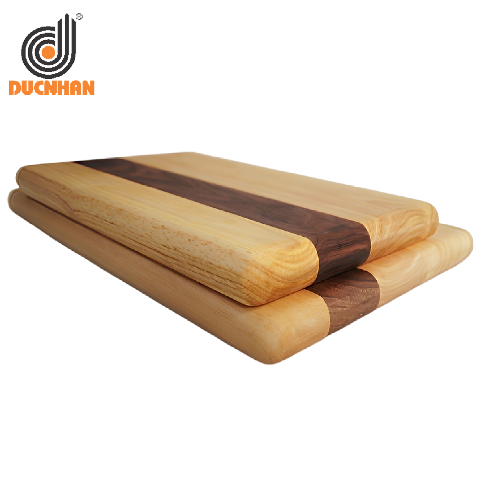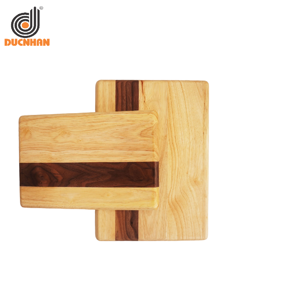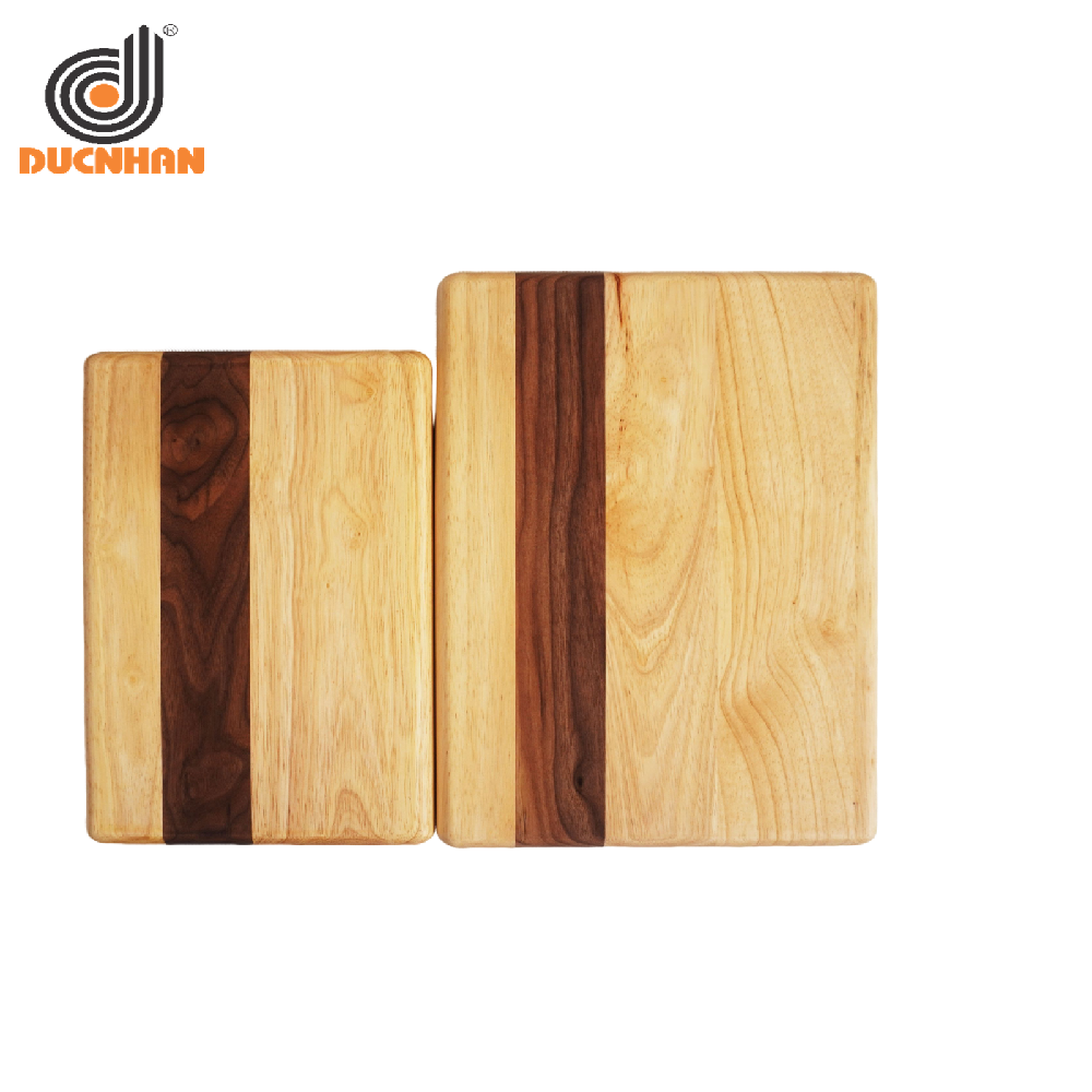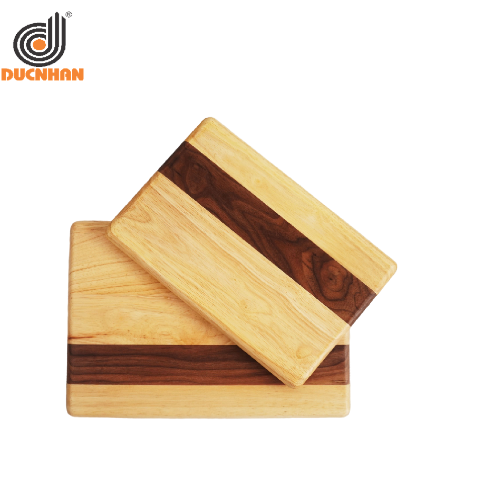 Set 2 thớt ghép cao su và óc chó hình chữ nhật màu tự nhiên DW105