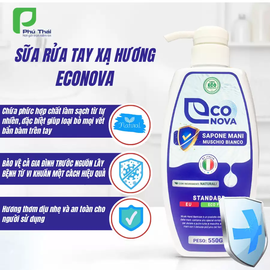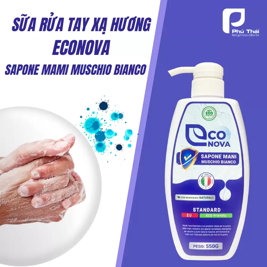 Sữa rửa tay xạ hương Econova – Shopbizne Mani Musschio Bianco 550g là sản phẩm chăm sóc đôi bàn tay với thành phần chủ yếu là hoa Xạ Hương. Được chiết xuất từ các loại hoa như Đào, Hoa Anh Đào, Hoa Mận, Hoa Liễu, Hoa Lily và nhiều loại thảo mộc khác, sản phẩm không chỉ giúp làm sạch hiệu quả mà còn bảo vệ da tay khỏi vi khuẩn, mang lại cảm giác mềm mại và thơm dịu. Đây là sự lựa chọn an toàn và hiệu quả cho việc bảo vệ sức khỏe và vệ sinh cá nhân hàng ngày.