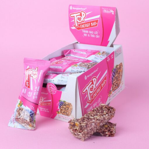 Thanh gạo lứt Top Energy Bar hạt và trái cây là một nguồn cung cấp khoáng chất và vitamin dồi dào cho chế độ ăn uống, hỗ trợ cân đối dinh dưỡng, tốt cho sức khỏe tổng thể. Đặc biệt, sản phẩm này bổ sung chất đạm và chất xơ, phù hợp cho người đang ăn kiêng hoặc giảm cân, và còn có lợi cho tim mạch và người mắc bệnh huyết áp. Được chế biến tiện lợi, sản phẩm này là sự lựa chọn thích hợp cho những người bận rộn, tập thể dục, hoạt động thể thao, hoặc cần một bữa ăn nhanh gọn và dinh dưỡng.